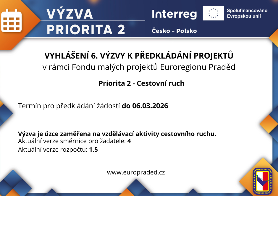 📢 Bylo vyhlášeno 6. kolo příjmu žádostí do Priority 2 – Cestovní ruch!